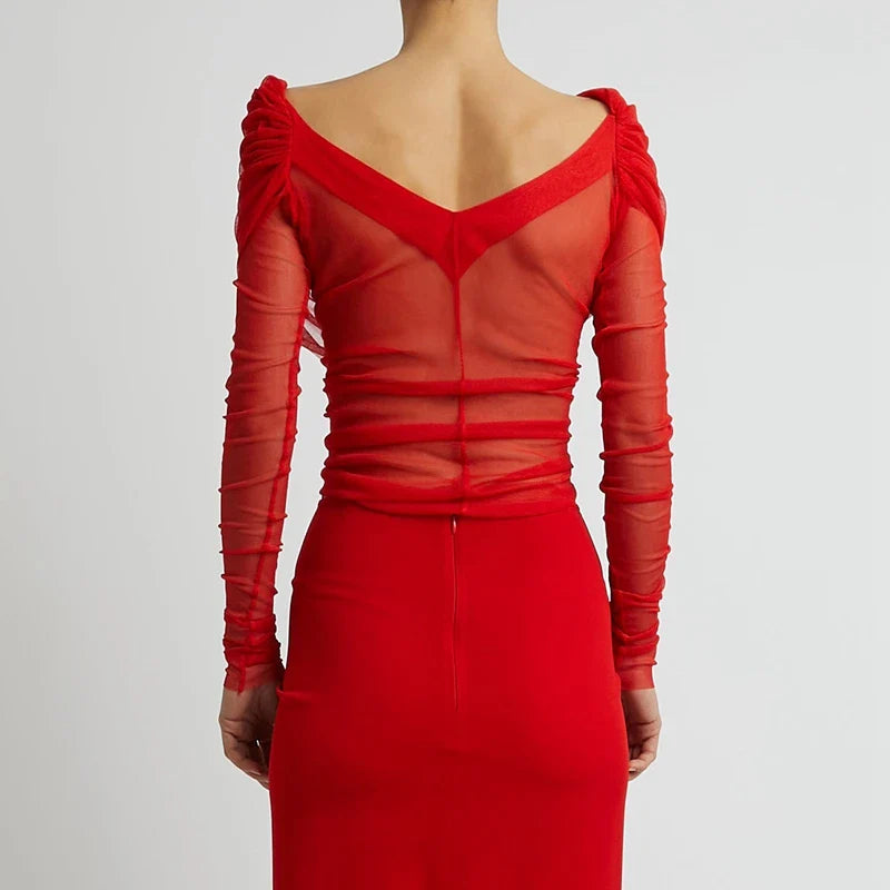 Material: Stretchy sheer mesh fabric.